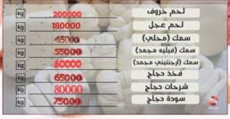 وسجل سعر كيلوغرام من لحوم البقر 180 ألف ليرة سورية فيما بلغ سعر كيلوغرام لحم الضأن 250 ألف ليرة سورية وارتفعت أسعار لحوم الدواجن لتتجاوز حاجز 60 ألف ليرة للكيلو الواحد.