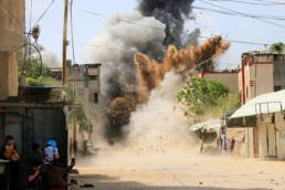 وبعد أيام على العدوان، تحرك سكان القطاع تضامناً مع مدينة القدس، وانطلقت مسيرة جماهيرية شرقي مدينة غزة باتجاه منطقة ملكة المحاذية للسياج الأمني العازل، مساء الخميس 18 أيار، تنديداً بـ”مسيرة الأعلام” التي نظّمها المستوطنون في مدينة القدس المحتلة، بمشاركة وزراء وأعضاء “كنيست” من الائتلاف الحكومي لدى الاحتلال، وعلى رأسهم إيتمار بن غفير، وزير الأمن القومي في حكومة الاحتلال.