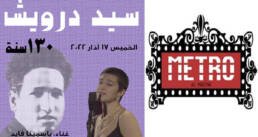 يختتم مسرح “مترو المدينة” الحفلات التي خصصها لسيّد درويش في ذكرى ولادته الـ130 لولادته، في 14 كانون الأول / ديسمبر 2022، وكانت قد انطلقت في آذار / مارس، وذلك من خلال أمسية غنائية عبارة عن تحية لـ “فنان الشعب” عنوانها “130 سنة سيد درويش”، وتحييها مجموعة من فنانين لبنانيين يحتفون بالفنان الإسكندراني عبر مختارات من أشهر أعماله.